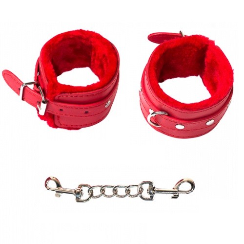 Наножники, оковы - Наручники с мехом Party Hard Calm красный, 1097-02